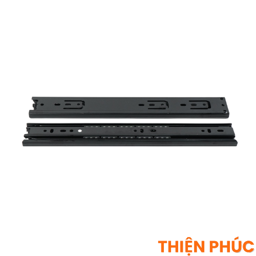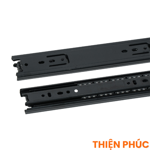 Được sản xuất từ chất liệu thép sơn tĩnh điện có độ bền cao, lắp đặt hai bên thành ngăn kéo hộc tủ Cấu tạo gồm 3 thanh mảnh được xếp chồng lên nhau, liên kết bởi 1-2 lớp bi nhỏ xếp song song Màu đen làm tăng thêm tính thẩm mỹ cao cho tủ bếp. Trông tủ sang trọng và ấn tượng. Tạo cảm giác tinh tế cho không gian nội thất Khả năng chịu tải trọng của tủ bếp lớn hơn hẳn so với ray trượt thông thường Tiện dụng chỉ cần một động tác nhẹ nhàng, cơ chế nhấn mở thích hợp cho mọi đối tượng sử dụng, trượt êm, siêu bền, chống han gỉ.